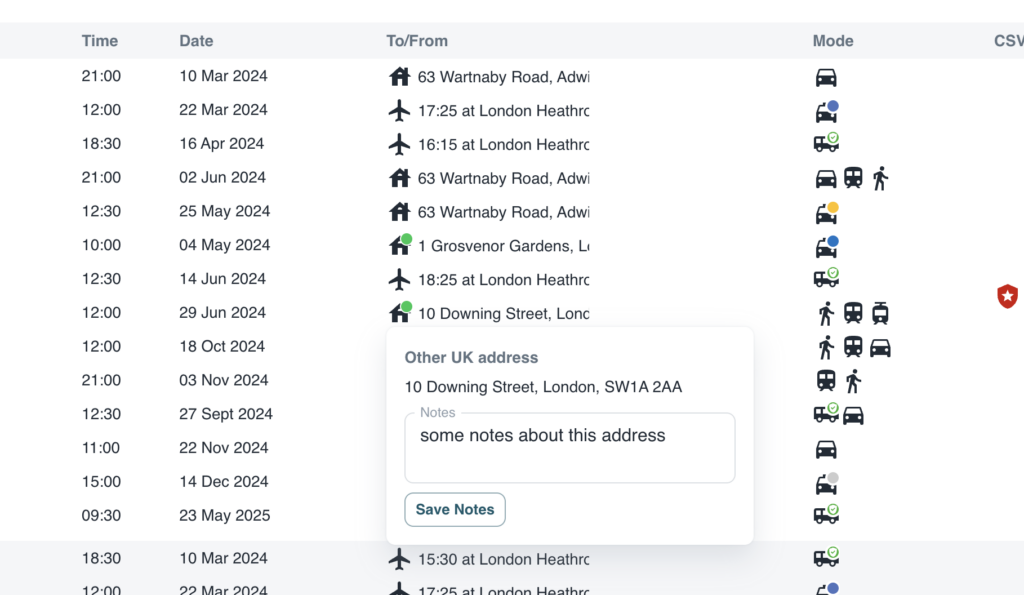 In all cases where the origin or destination is Other UK Address, notes can now be added by staff.